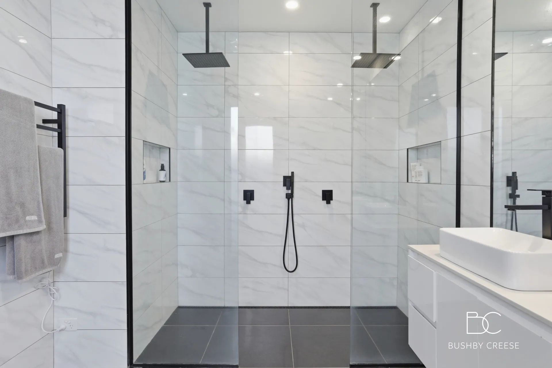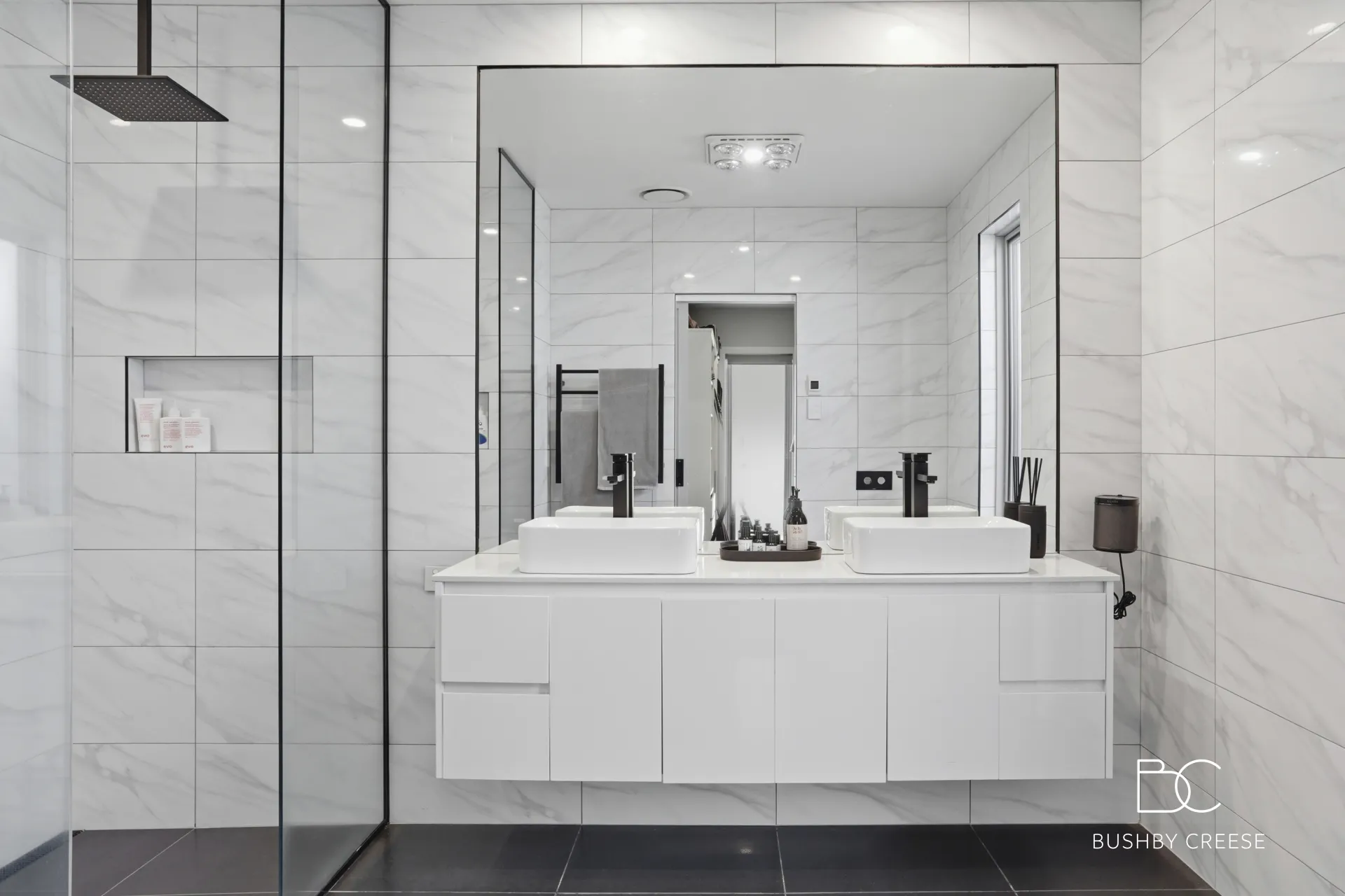 Accommodation is flexible and well-appointed, offering four bedrooms or alternatively three bedrooms with the option of a dedicated home office. The master bedroom is private and comes complete with a walk-in wardrobe and a sophisticated ensuite designed for two, featuring dual sinks and dual showerheads.