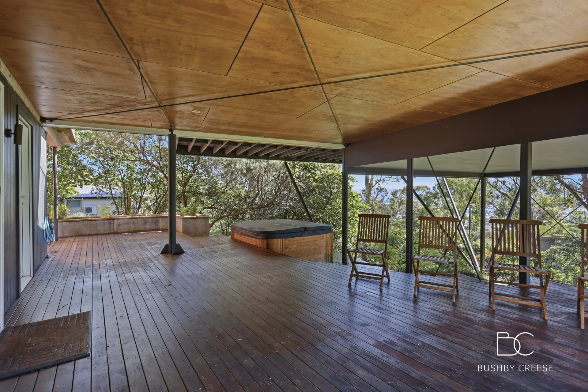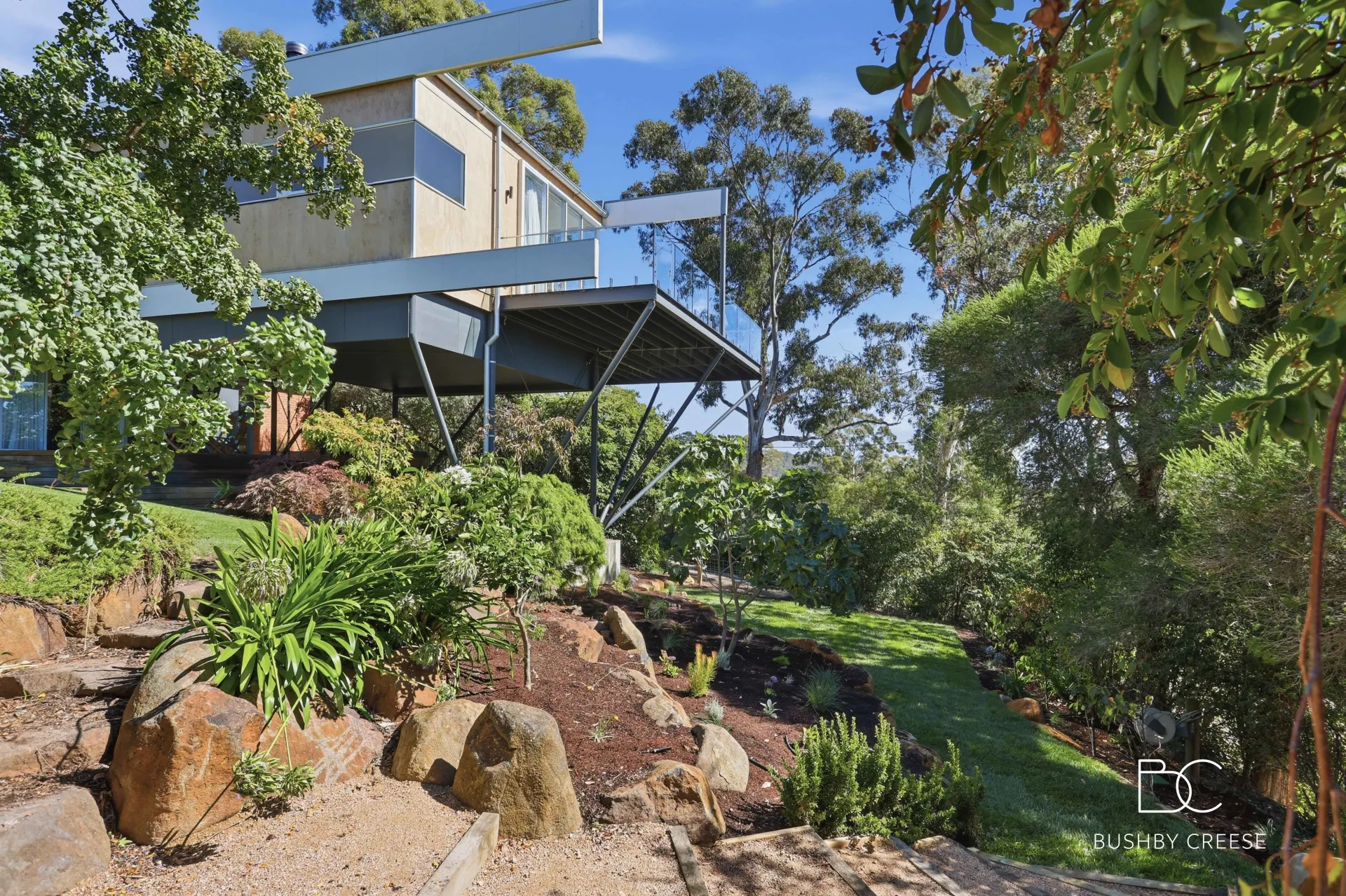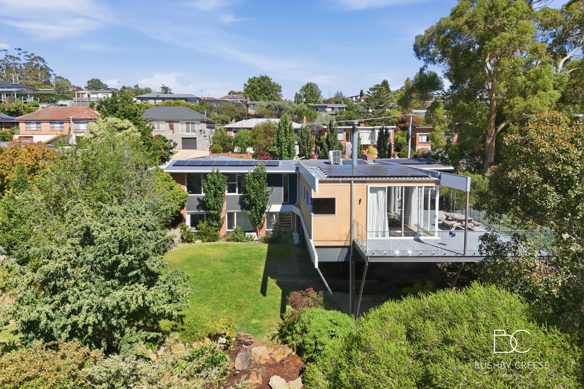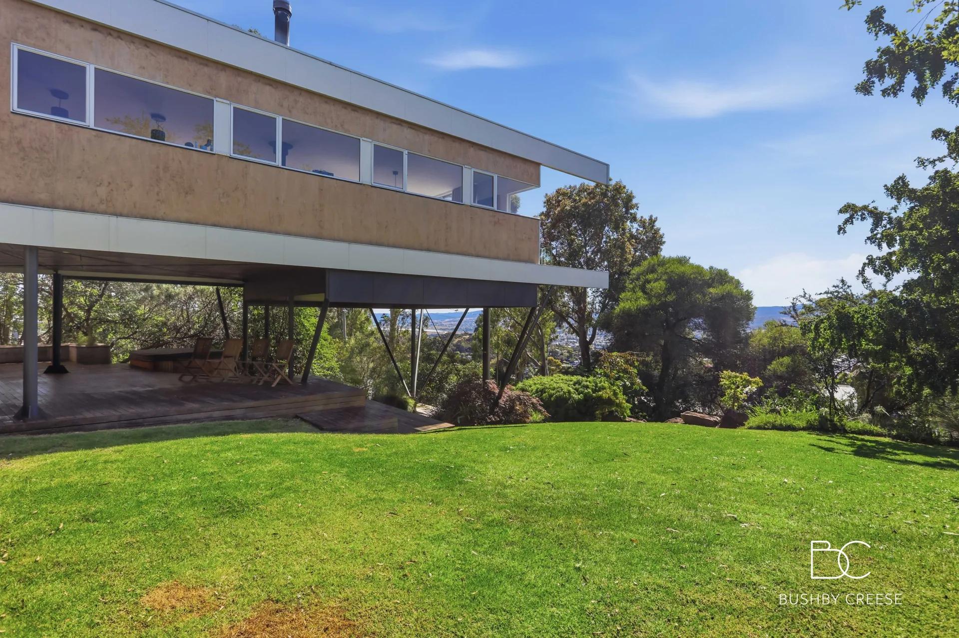Perched high above West Launceston and surrounded by the tranquillity of nature, this unique architecturally designed residence offers a rare combination of original character, sweeping views across the river and beyond, and refined contemporary comfort.