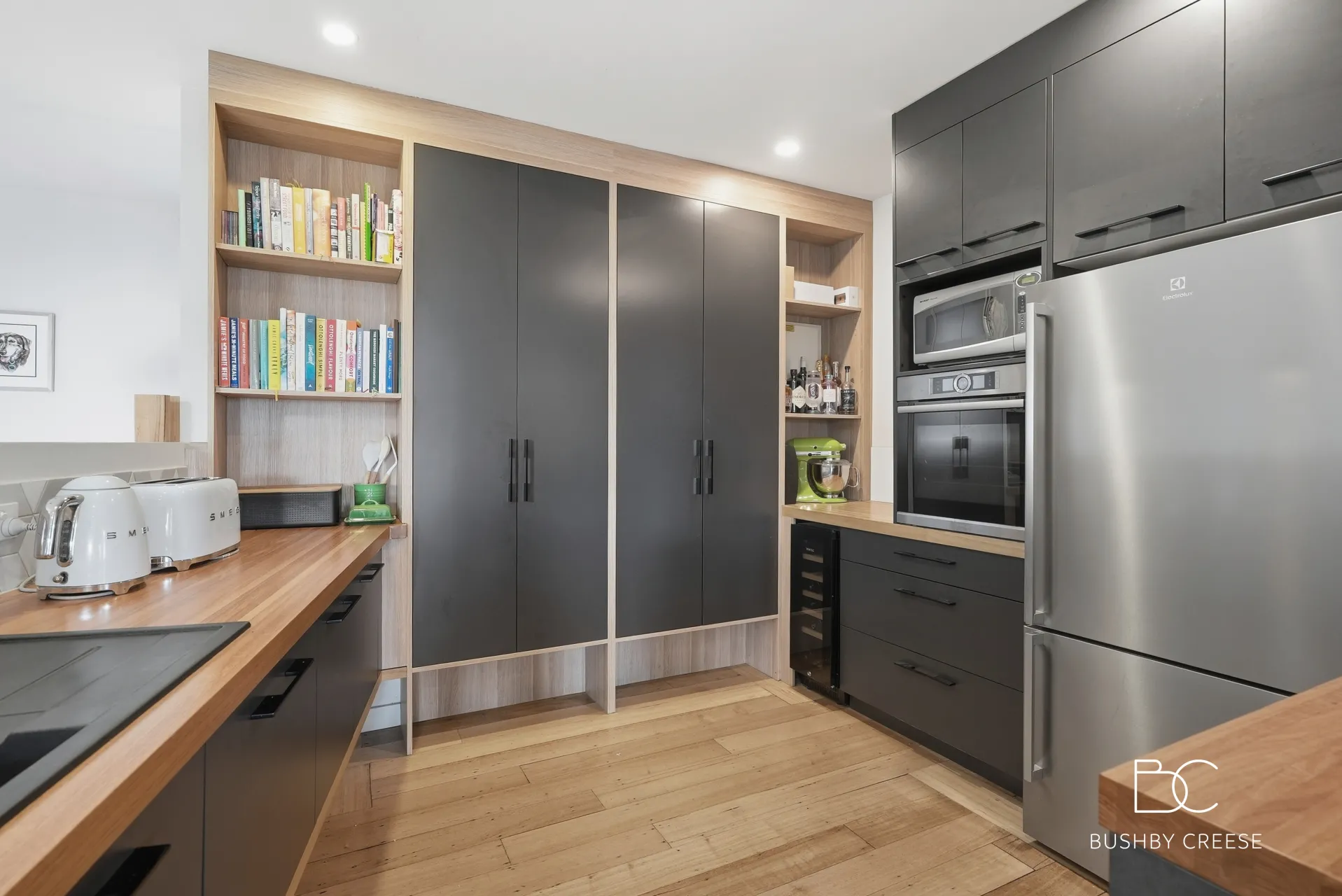 The contemporary kitchen has been designed with everyday living and entertaining in mind. Complete with premium appliances, generous bench space, abundant storage, and a dedicated scullery, the kitchen seamlessly integrates with the family dining area, creating a welcoming hub.